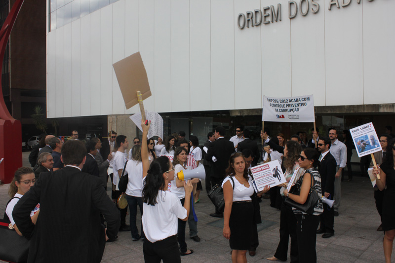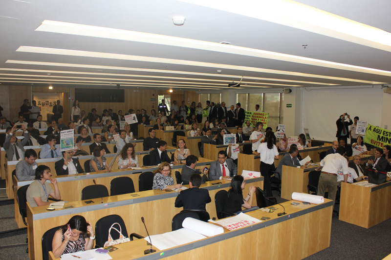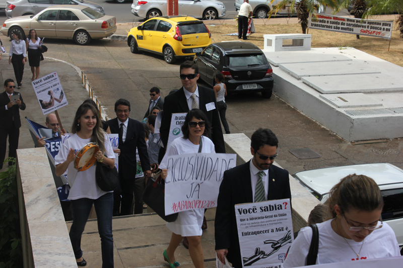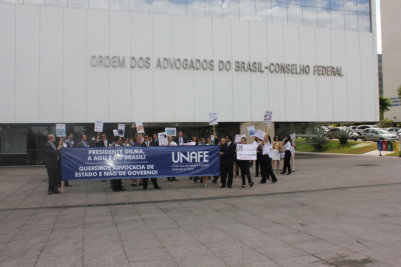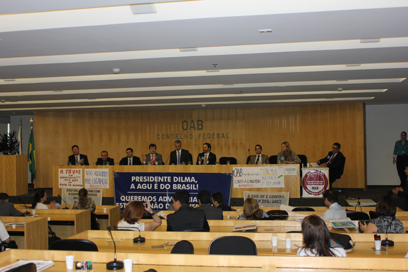Cerca de 300 membros das carreiras da Advocacia-Geral da União compareceram ontem (14) ao ato contra o projeto de lei orgânica da AGU na sede do Conselho Federal da OAB.
