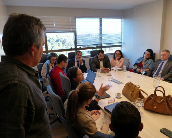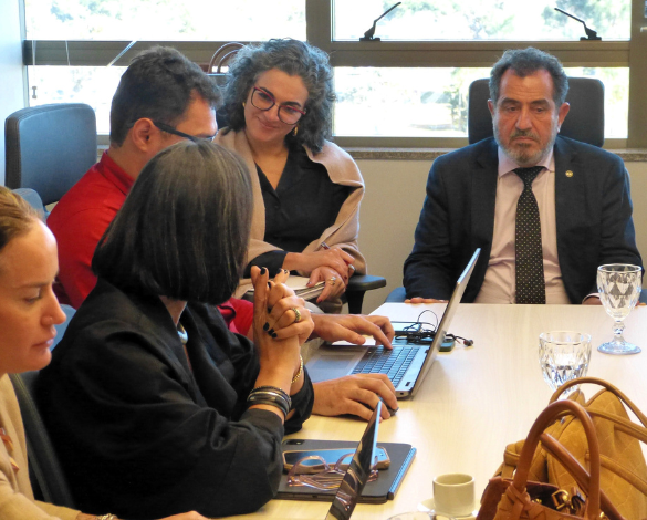 A presidente Valéria Ferreira, o vice-presidente, Alexandre Torres, e os diretores Rodrigo Mellet, Paulo Roberto Gonçalves e Ricardo Zacharias representaram o SINPROFAZ em reunião na tarde da quarta-feira (2) entre as entidades representativas e os conselheiros do CCHA. O encontro ocorreu na sede do Conselho, em Brasília/DF.