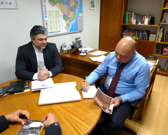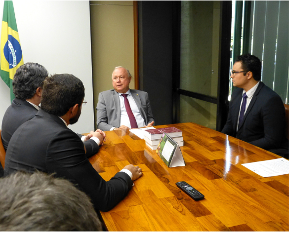 Com enorme honra, os representantes do SINPROFAZ foram recebidos pelo Presidente da Comissão de Constituição e Justiça e de Cidadania (CCJ) da Câmara dos Deputados, Paulo Azi (União/BA). Ao Parlamentar e à equipe do gabinete, os PFNs demonstraram a pertinência do PL 5531/2016, que se encontra pronto para a pauta na CCJ. Paulo Azi foi extremamente receptivo aos argumentos apresentados pelo SINPROFAZ, razão pela qual o Sindicato agradece profundamente a atenção do Deputado. Os agradecimentos sindicais se estendem ao Relator Felipe Francischini (União/PR), que já apresentou parecer pela constitucionalidade, juridicidade e técnica legislativa do PL 5531.