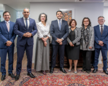 A diretora Michelle Cavalcante e a presidente Valéria Ferreira se reuniram com a procuradora da Fazenda Nacional e filiada Mariana Montenegro, presidente da Comissão de Ética da Advocacia-Geral da União. O encontro possibilitou que os presentes tratassem do Código de Ética da instituição.