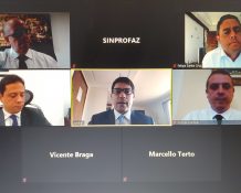 Do encontro virtual, participaram o presidente da entidade, Achilles Frias, representante do SINPROFAZ; a vice-presidente do FORVM, Ruth Miller, representante da ANAJUR; a diretora financeira, Márcia David, e o secretário-geral, Caio Wolff, da ANAUNI.