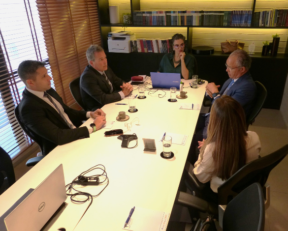O advogado e ex-deputado federal Vicente Cândido e a advogada Fernanda Figueiredo, integrantes do escritório Innocenti Advogados Associados, foram recebidos na sede do SINPROFAZ na quinta-feira (7). Representando o Sindicato, estiveram presentes a presidente, Valéria Ferreira; o diretor jurídico, Paulo Roberto Gonçalves; e o vice-presidente, Carlos Alexandre Torres.