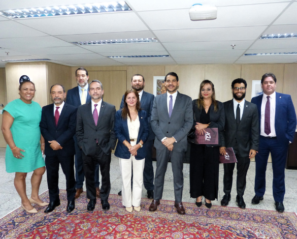O SINPROFAZ, representado pela presidente Iolanda Guindani, pelo vice-presidente Ricardo Queiroz e pelos filiados Richardes Cavalcanti e Graziela Honorato, foi recebido ontem (19) pelo ministro da Advocacia-Geral da União, Jorge Messias. A reunião, na sede da Instituição em Brasília/DF, também contou com a presença de outros integrantes da cúpula da AGU, entre os quais os filiados Heráclio Camargo, João Carlos Souto e Claudia Trindade. Na oportunidade, o SINPROFAZ pleiteou a intervenção do ministro para o atendimento integral, pelo Ministério da Gestão e da Inovação em Serviços Públicos (MGI), da Pauta de Reivindicações a ser levada à Mesa Setorial da Advocacia Pública Federal.