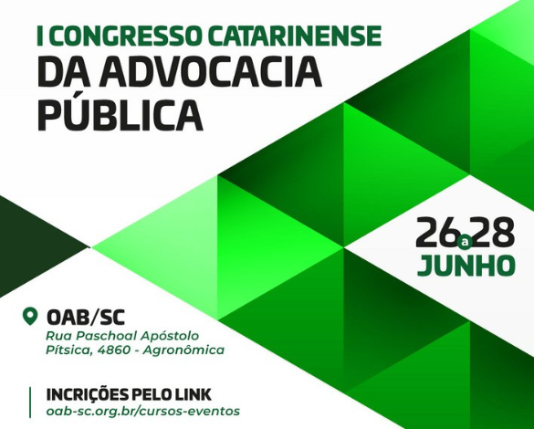Os detalhes da Programação podem ser consultados em: https://www.oab-sc.org.br/cursos-eventos/2024/06/26/i-congresso-catarinense-advocacia-publica/4781. Prestigie!