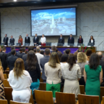 O drama vivido pela população do Rio Grande do Sul, que vem sofrendo com intensas chuvas e enchentes, foi lembrado diversas vezes ao longo da solenidade. Ao fazer uso da palavra, Iolanda Guindani lamentou a ausência dos Colegas gaúchos, que não puderam participar presencialmente do Congresso, e abordou as dificuldades enfrentadas no estado. “Quem presenciou aquela realidade tem dimensão da tristeza com a qual estamos convivendo. Espero que a situação no Rio Grande do Sul sirva de alerta com relação aos eventos climáticos extremos, que têm acontecido cada vez com mais frequência.” Por fim, a presidente agradeceu o empenho coletivo na obtenção de doações: “A PGFN pode contar com o Sindicato para o trabalho conjunto em prol da Carreira e do País”.