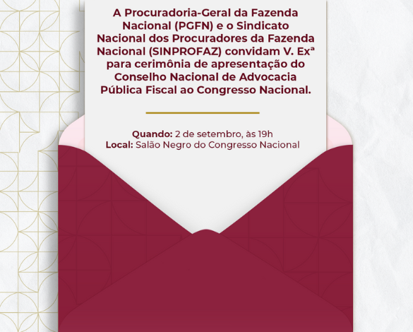 O SINPROFAZ e a PGFN têm a honra de convidar as Advogadas Públicas e os Advogados Públicos para a cerimônia de apresentação do Conselho Nacional de Advocacia Pública Fiscal.
